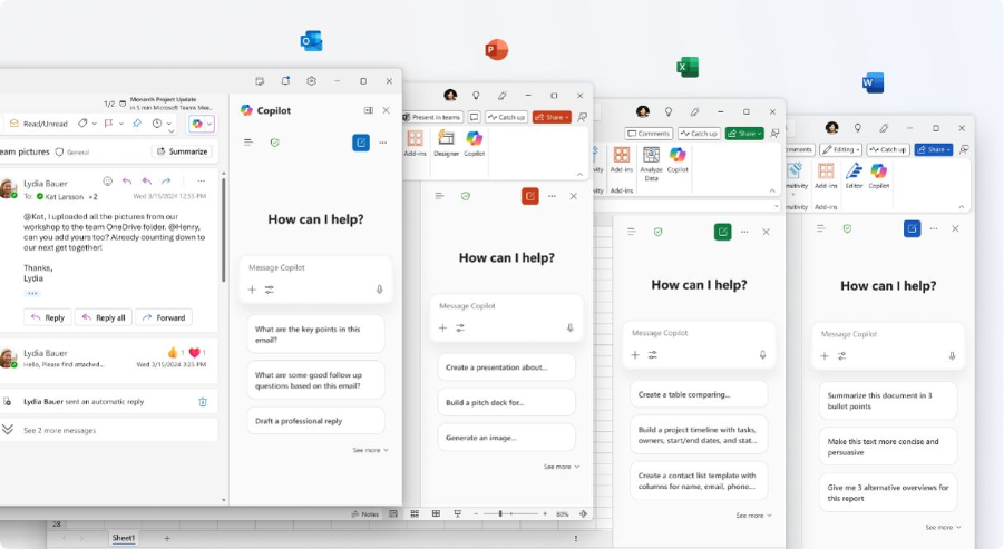 How Copilot Chat works in Outlook, Word, PowerPoint, OneNote, and Excel